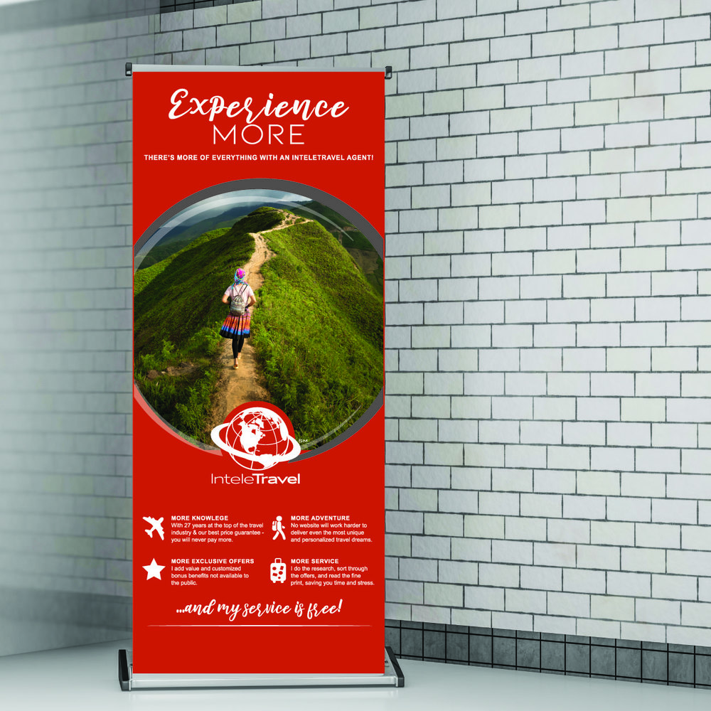 sku: Deluxe Consumer Banner Stand_Experience*Do You Need A Banner Stand That Is HEAVY DUTY, TALL, and VIVID? Are You Always Tring To Hang A Sign? Need AStand? Signage lasts a long time. Get your entire deluxe banner stand today with stand, attached banner and carry bag!