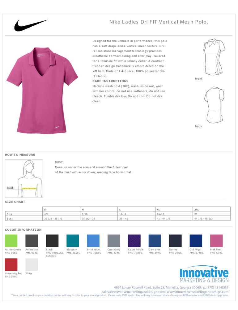 sku: KRNPF-JZCTO-637165-EThe perfect combination of work and play, ready for any InteleTravel agent looking to up his style. Designed for the ultimate in performance this polo has an understated vertical mesh texture. Dri-FIT moisture management technology provides breathable comfort during and after play. Tailored for a feminine fit with a Johnny collar and a contrast Swoosh design trademark embroidered on the left sleeve.