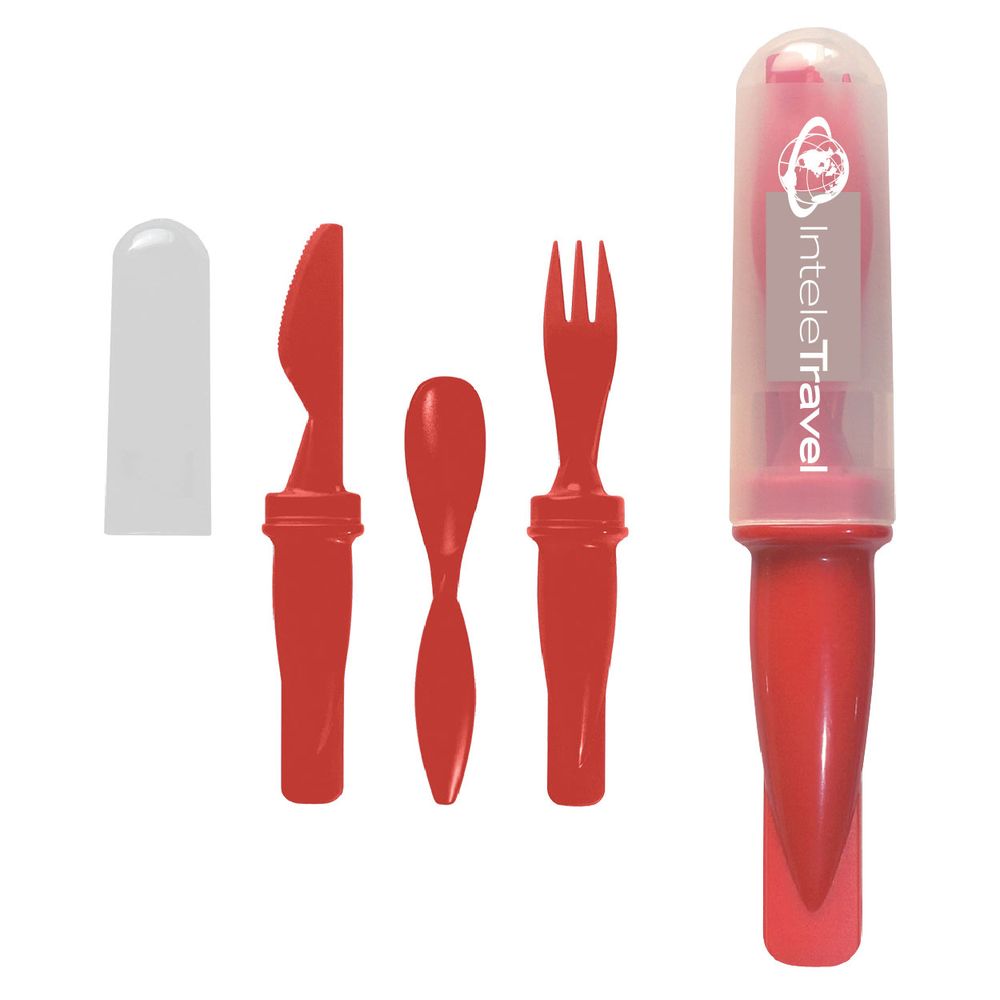 sku: UOSNJ-NCRJC-CUT100*This dishwasher safe silverware cutlery set is PERFECT for the on the go team, individual, and or travel expert looking to either use it or hand it out to clients. Inexpensive tought ABS plastic includes a fork, knife and a spoon measuring 7" tall by 1.25" wide! The nesting nature of the pieces and the clear organizing cap make this the perfect event and or appreciate product to hand out to anyone you want to attract to your brand.