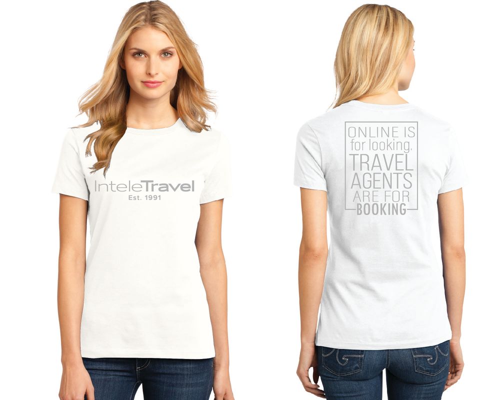 sku: BOUPH-LJEES-DM104L-FTAre you promoting your skills as a travel agent? Deck yourself out in one of our luxury super soft tee shirts and proudly strut around down having people absorb your message by impression marketing! This super soft tee shirt is designed to be worn every day. THIS AMAZING SILVER FOIL ON WHITE FABRIC DESIGN IS A REAL WINNER HAVING BEEN TESTED FOR MESSAGE APPROVAL AT ITQ BY THE ELITE AGENTS IN ATTENDANCE.